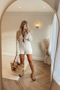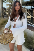 Effortless Style with a Feminine Touch - The Abigail™ - Flared Sleeve Lace Up Shirt and Shorts Set combines playful details with everyday elegance. Featuring a flattering button-down top and dramatic flared sleeves, this set is perfect for any casual outing. Paired with matching shorts, it offers a chic yet comfortable look for relaxed afternoons or weekend brunches.