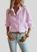 Elevate Your Wardrobe with Our Stylish Blouse! - This blouse features a sophisticated design with unique ruffles and an elegant collar, adding a feminine touch to any outfit. Made from high-quality materials, it's soft, breathable, and stretchy, ensuring all-day comfort. The button-down design allows for a customizable fit, while long sleeves provide warmth on cooler days.