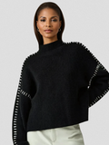 Made from soft, insulating wool, the Brenda features a ribbed texture that’s classic yet refined. The relaxed, oversized fit drapes gracefully, creating a flattering silhouette that feels as good as it looks. Thoughtful detailing along the sleeves and shoulders adds an artisanal finish, while the timeless mock neck keeps you cozy with an elegant touch. Pair it with jeans for casual outings, or dress it up with tailored pants or a skirt for evenings out. With its versatile design and timeless style, this sweater will be a wardrobe favorite for years to come.