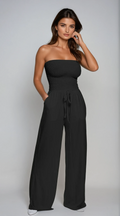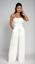 Meet the Delaney — a strapless jumpsuit that blends casual comfort with understated elegance. Designed with a flattering shirred bodice and relaxed wide-leg silhouette, it’s the kind of piece that makes getting dressed feel like a breeze. The soft, breathable fabric moves with you, while hidden side pockets add practical charm. Whether you're brunching, lounging, or jet-setting, the Delaney is your go-to for modern ease and versatile styling — only from Helen & Grace Boutique.