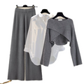 Style: 3-piece knitted set (sweater, shirt, wide-leg pants)