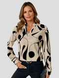 The Lyra Satin Look Blouse is where timeless sophistication meets modern style. Designed with a bold black-and-white abstract print, it brings an artistic touch to any outfit. The elegant V-neckline and tailored fit create a flattering silhouette, while the long cuffed sleeves add a refined finish.