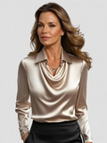 Bring effortless polish to every moment with the Melody Satin Drape Blouse – one of our absolute bestsellers. With its fluid draped neckline and soft satin sheen, this blouse balances timeless elegance with everyday comfort.
