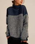 This sweater features a striking herringbone pattern that will add a special touch to your cold weather looks. Pair it with your favorite pants or skirts for a chic and polished ensemble that exudes sophistication.