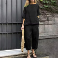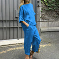 Embrace natural textures and all-day ease with the Solene Cotton-Linen Set — a breathable, two-piece outfit designed for elevated everyday living. This lightweight set includes a relaxed-fit top and high-waisted wide-leg trousers, both crafted from a soft cotton-linen blend that moves with you. Whether you're lounging at home, catching a flight, or heading to brunch, Solene offers that rare balance of polish and pure comfort.